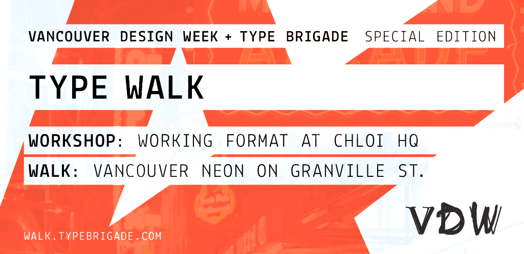 Vancouver Design Week is happening in September, and we’re excited to have Type Brigade be part of it with Type Walk on the September 26th!